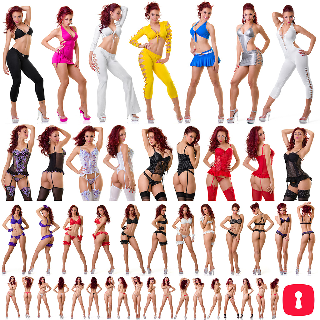 "Yes! Yes! First topless girl on the left is wearing beige G--string with red straps; second girl's wearing red G-string and showing her back; third girl is topless and has one arm across her boobs; four girl is --"
